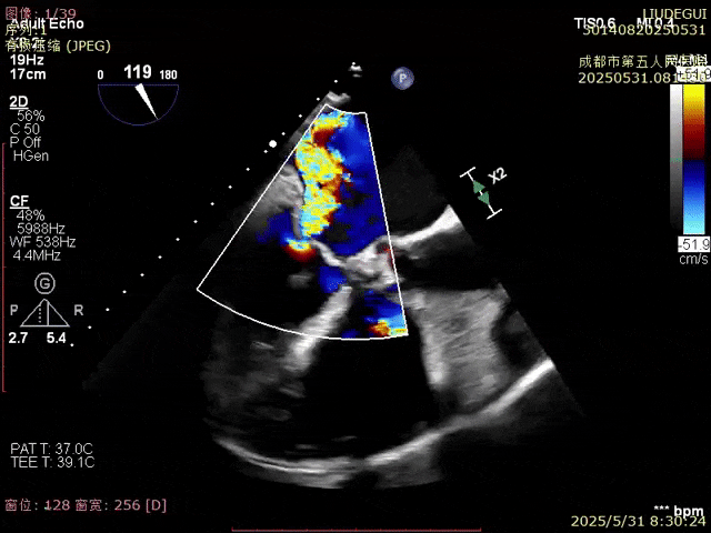 VFMR,反流2區(qū),新分型CCA型,MR重度(VC:3*14mm),A2:21mm,P2:10-11mm,AP:30mm,前后葉間3mm gap,MVA約5.1cm²