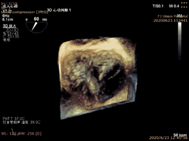 第一例為男性老年患者,因反復(fù)氣促、胸悶1年,加重1個(gè)月入院,超聲心動(dòng)圖評(píng)估為二尖瓣后葉P2脫垂,腱索斷裂伴重度反流,心外科會(huì)診認(rèn)為開胸手術(shù)高風(fēng)險(xiǎn),STS評(píng)分為10%?;颊咴谌橄滦募獠课磺虚_3cm小切口,在跳動(dòng)心臟上置入導(dǎo)管植入一枚ValveClamp夾合器,術(shù)后即刻經(jīng)食道超聲顯示患者的反流降至輕度,手術(shù)經(jīng)心尖切開小切口到關(guān)閉切口總時(shí)間約60分鐘,經(jīng)心尖導(dǎo)管操作時(shí)間僅15分鐘左右。
